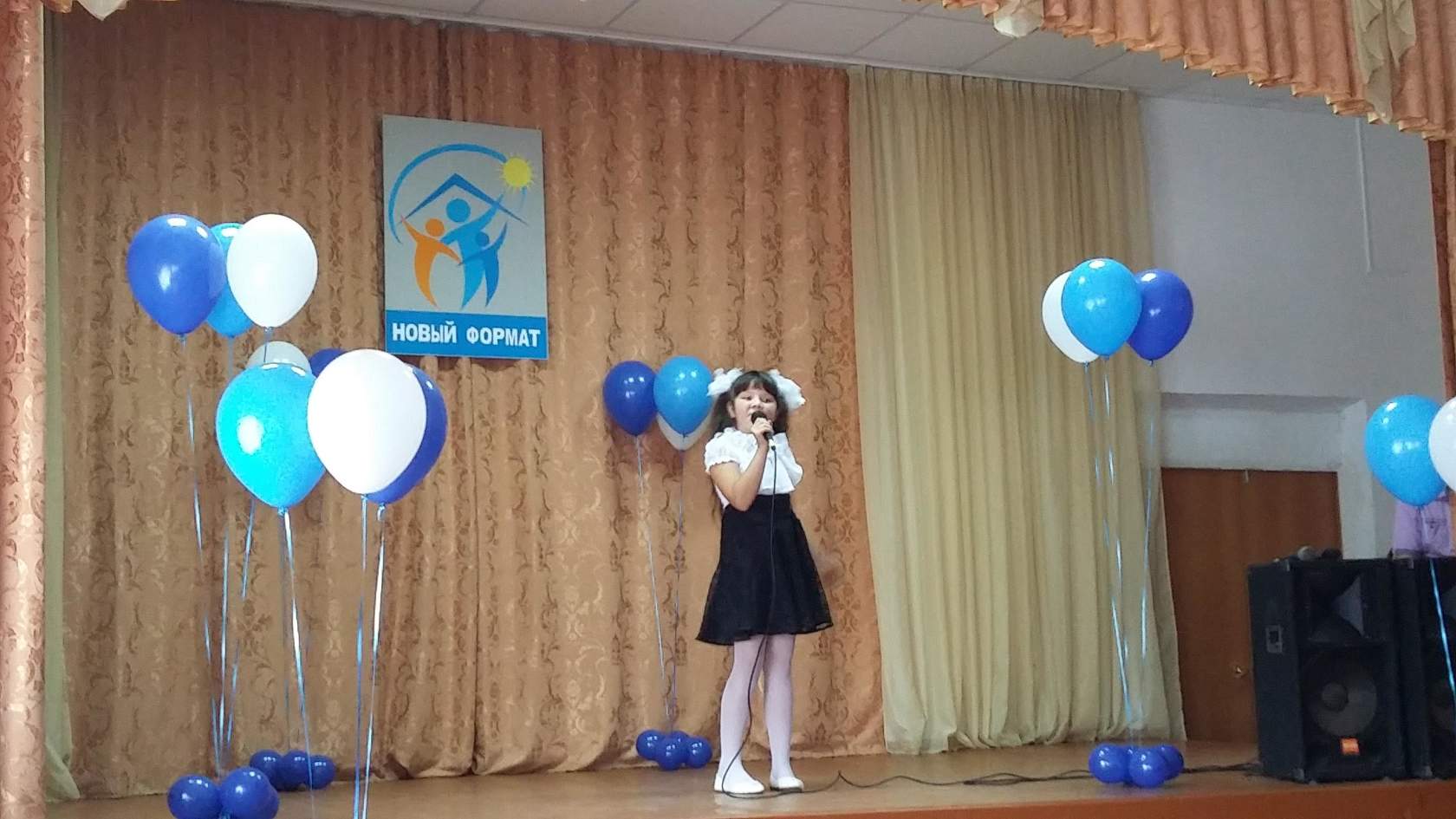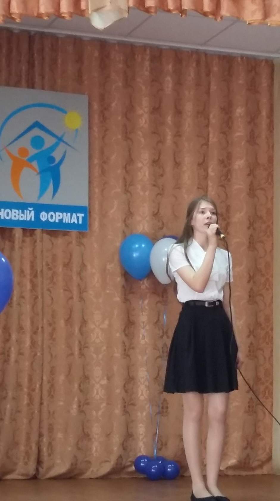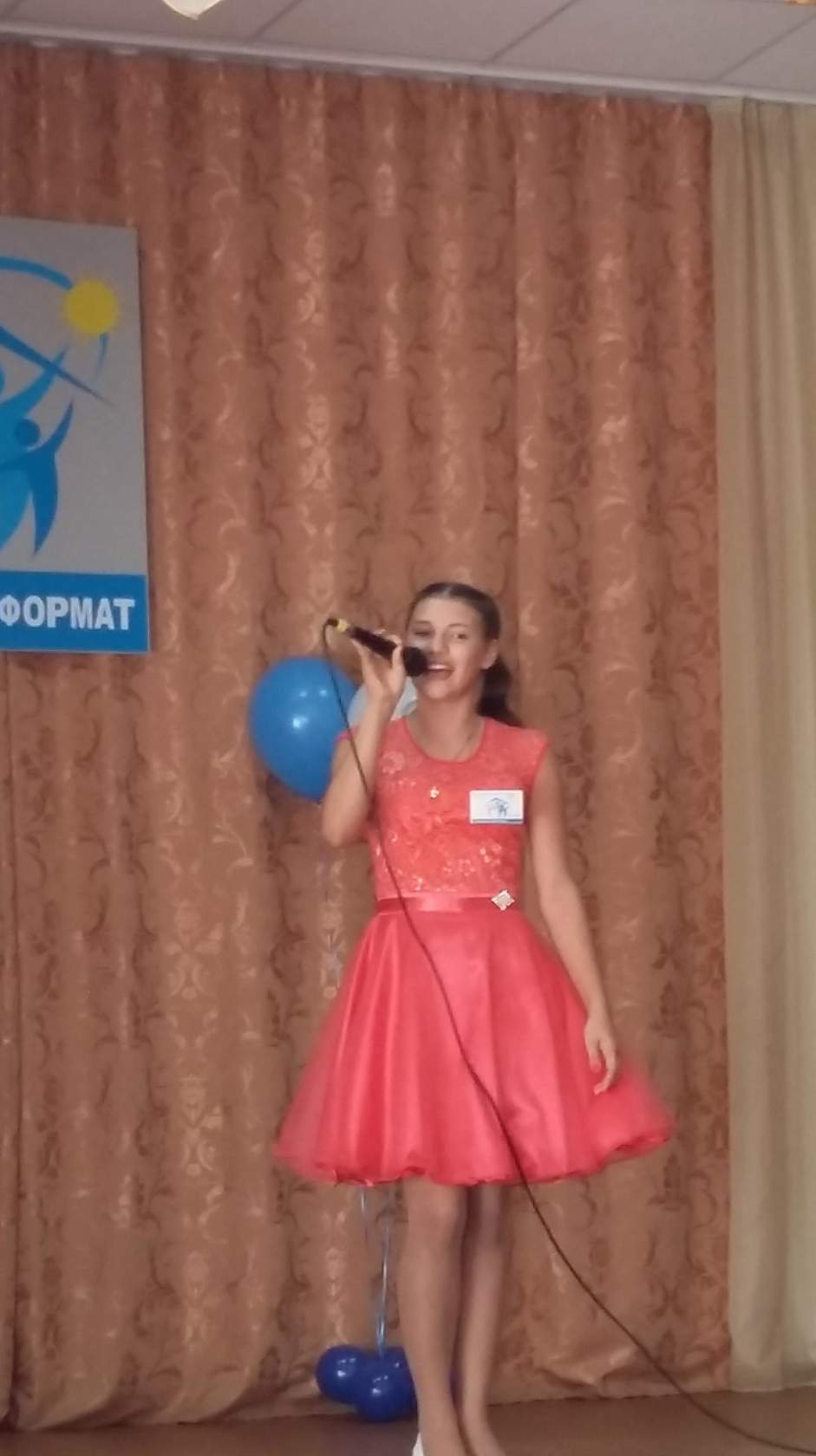 В актовом зале собрались самые музыкальные. В непринуждённой обстановке мы отлично провели время, мы услышали исполнение песен многих ребят, а Данилова Наталья успевала делать цветы из воздушных шаров, которые были подарены всем участникам.