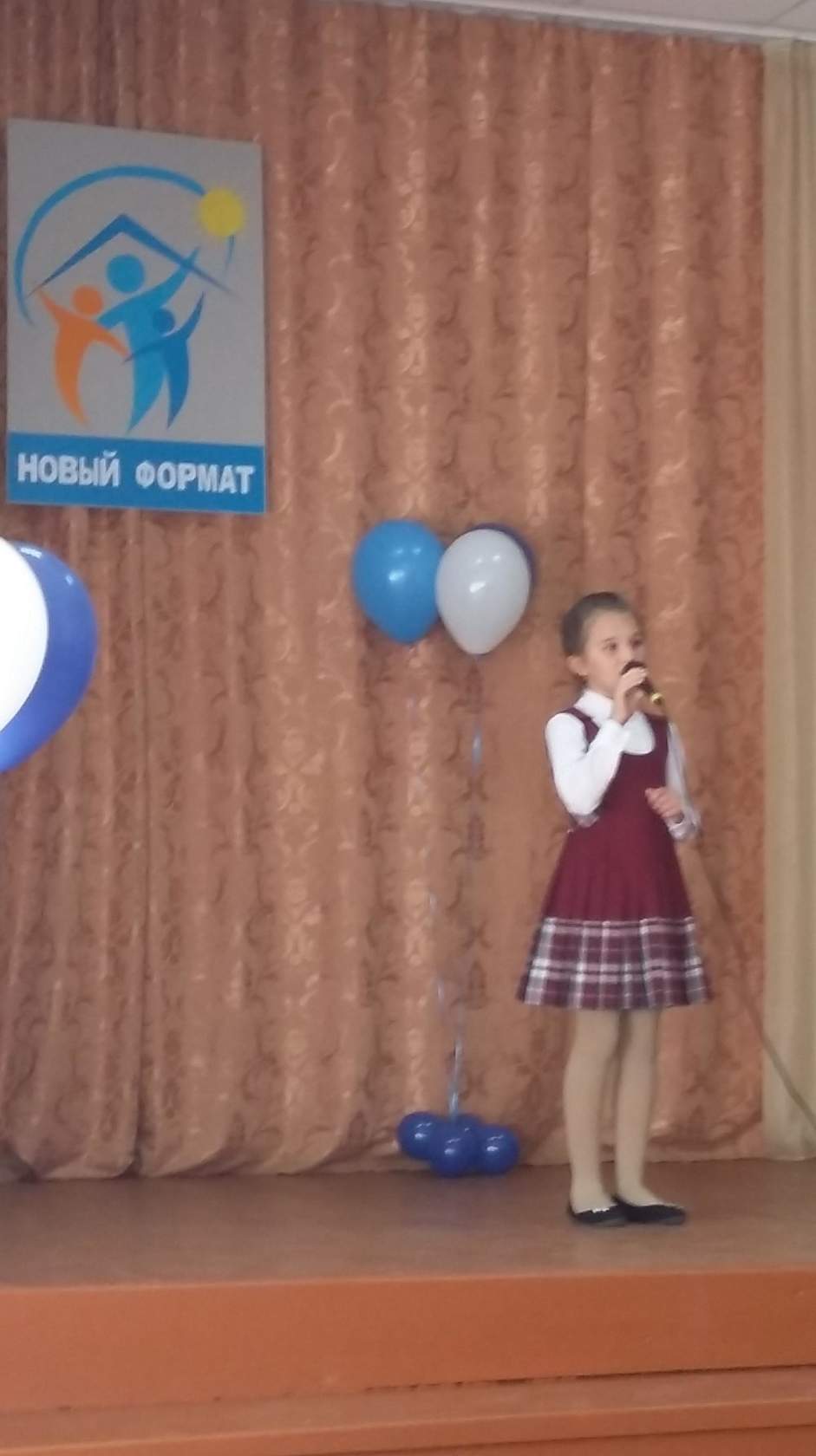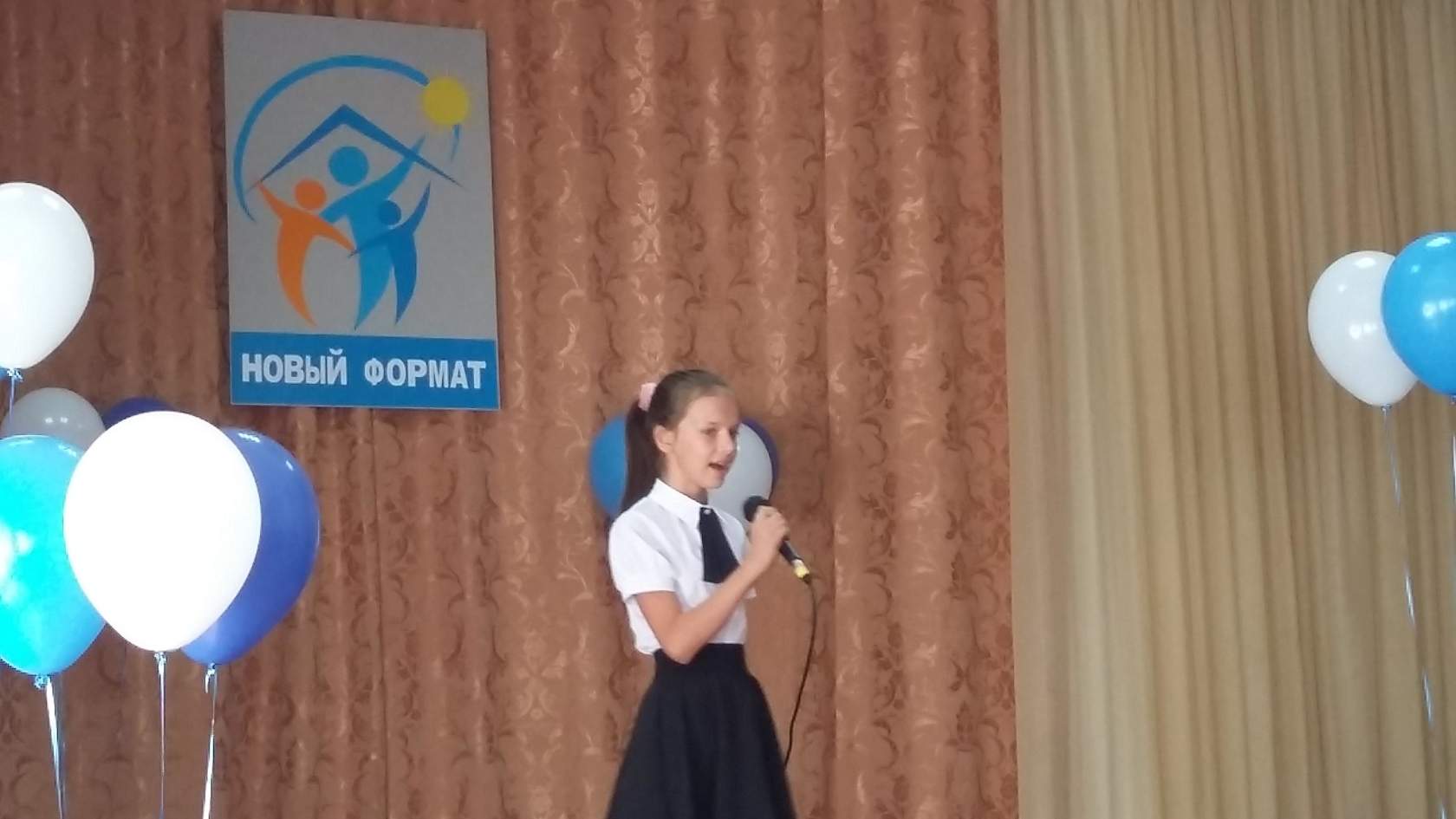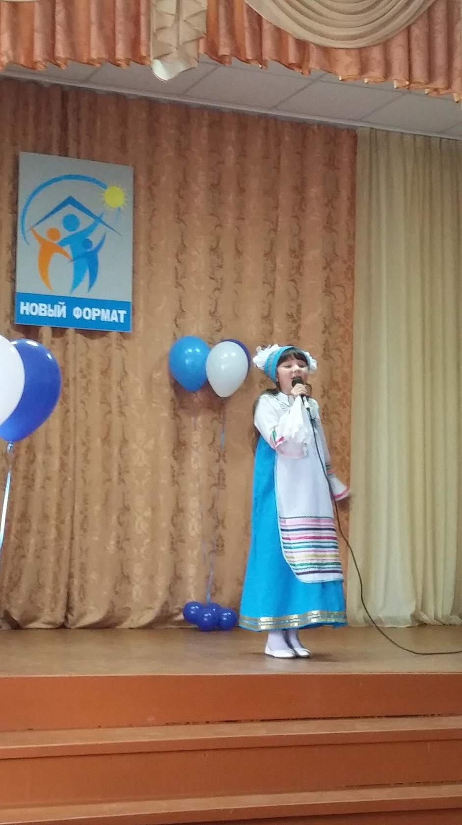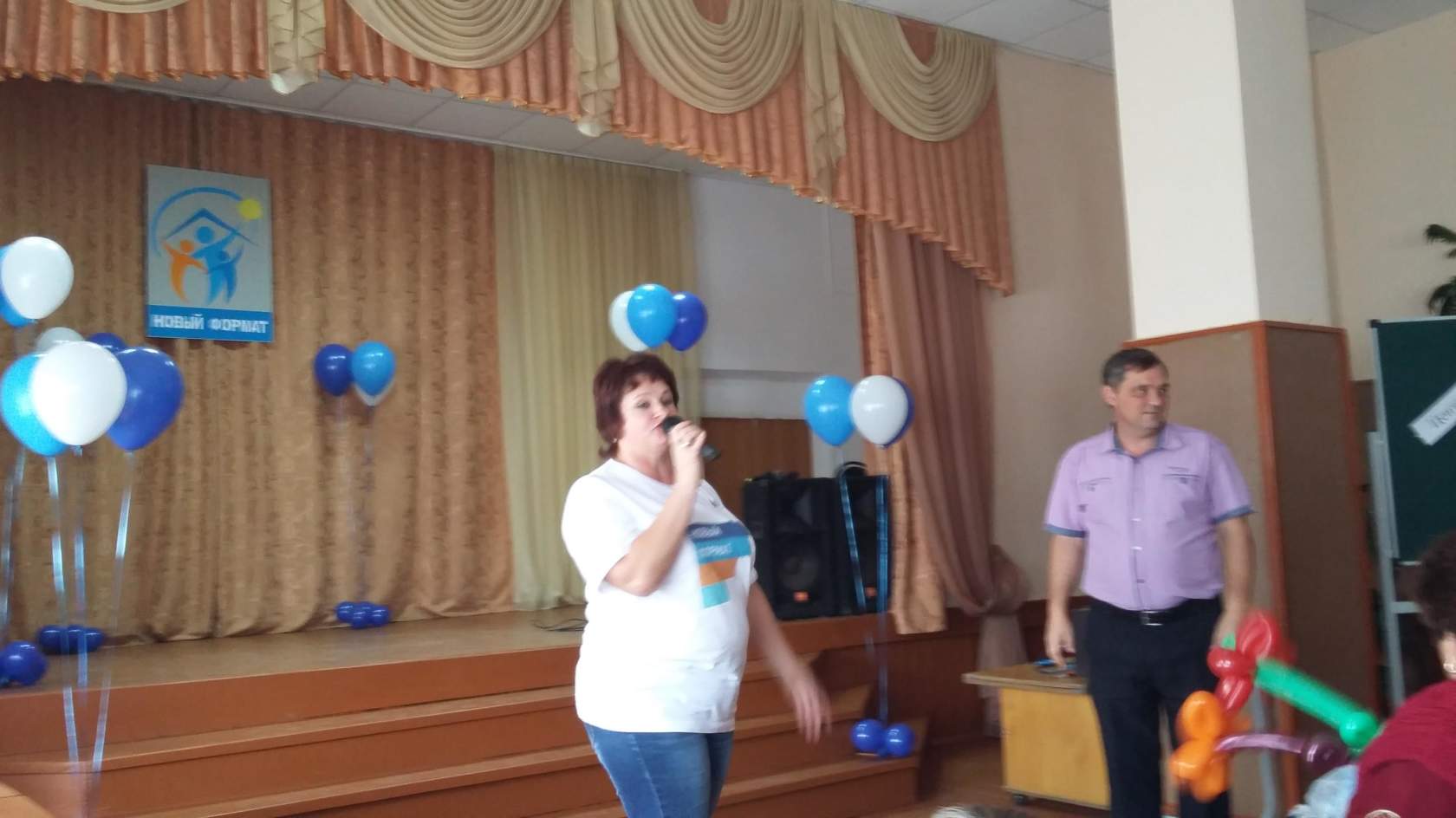 В актовом зале собрались самые музыкальные. В непринуждённой обстановке мы отлично провели время, мы услышали исполнение песен многих ребят, а Данилова Наталья успевала делать цветы из воздушных шаров, которые были подарены всем участникам.